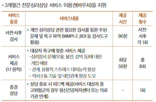 청년마음 건강 지원 사업 지원 내용은?