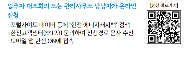 | 신청 대상 | 주택용(가정용) 전기를 사용하는 고객 | 전기요금을 관리비에 포함하여 납부하는 아파트 |